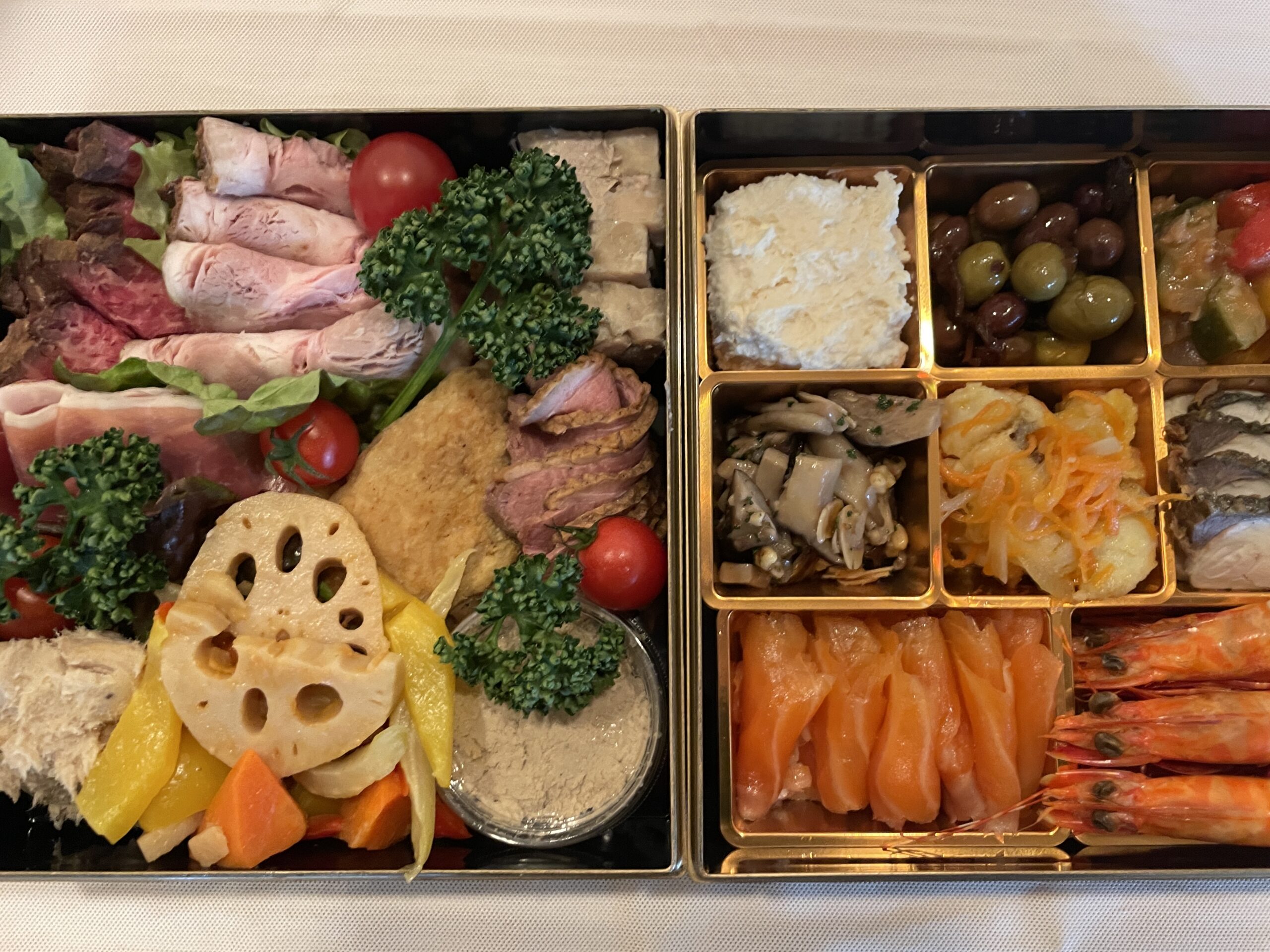 今年もおせちのご予約をスタートしました。新年にフレンチのおせちはいかがですか?当店のおせちは2段重で一の重は自家製スモークサーモンやブランタード、オリーブのマリネなど魚介や野菜が中心です。二の重は鴨のスモークや生ハム、リエットなどお肉モリモリの重となっております。 税込¥32,400 お渡しは2025年12月31日 13:00~14:00 店頭にて。限定20セット 代金は前払いとさせて頂いております。まずお電話で予約可能かお問合せ下さい。ご予約お待ちしております。